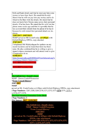 served on Mr. Cordell today at 4.05pm with Enfield Highway