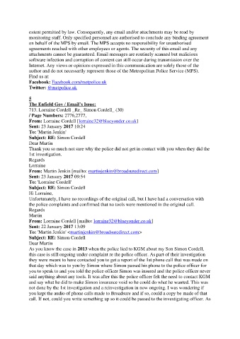 As you know the case in 2013 when the police lied to KGM about my Son Simon Cordell,