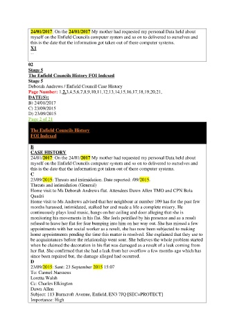 24/01/2017: On the 24/01/2017 My mother had requested my personal Data held about