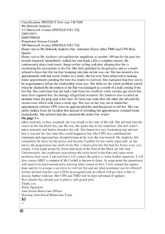 problems than usual. I advised that I will contact the police to make further enquiries. I will