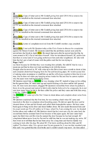06/12/2016: Letter of complaint received from Mr Cordell's mother; copy attached.