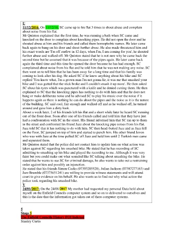 11/12/2016: On 11/12/16, SC came up to his flat 3 times to shout abuse and complain