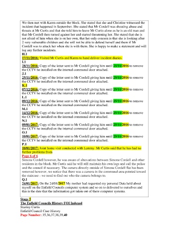 incident that happened in September. She stated that Mr Cordell was shouting abuse and
