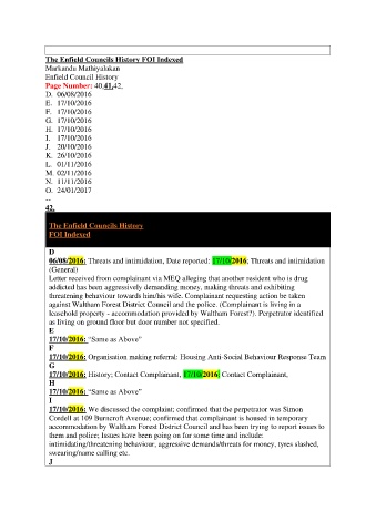 against Waltham Forest District Council and the police. (Complainant is living in a