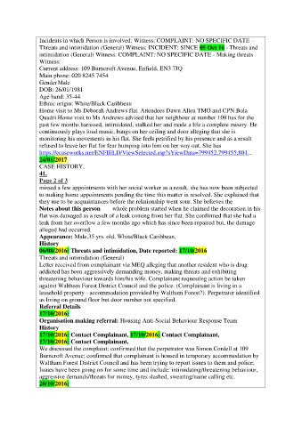 leasehold property - accommodation provided by Waltham Forest?). Perpetrator identified