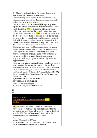 Re: Allegations of Anti-Social Behaviour, Harassment,