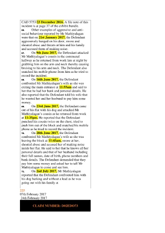 67. On 9th June 2017, the Defendant attacked