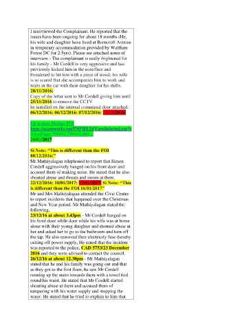 interview - The complainant is really frightened for
