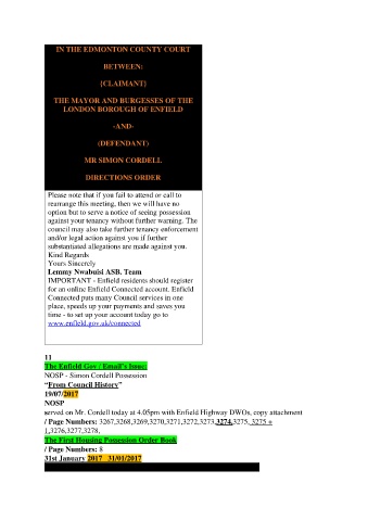 served on Mr. Cordell today at 4.05pm with Enfield Highway DWOs, copy attachment