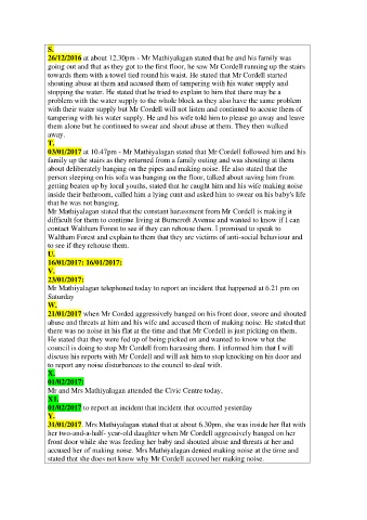 21/01/2017 when Mr Corded aggressively banged on his front door, swore and shouted