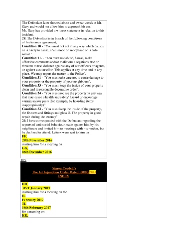 28. The Defendant is in breach of the following conditions