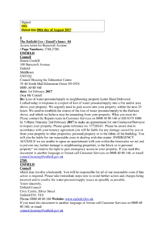 Re: Loss of water pressure/supply to neighbouring property Letter Hand Delivered