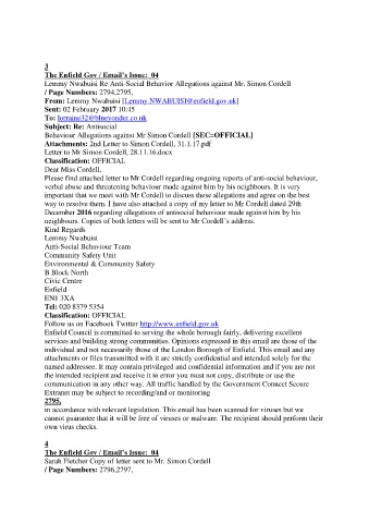 Lemmy Nwabuisi Re Anti-Social Behavior Allegations against Mr. Simon Cordell