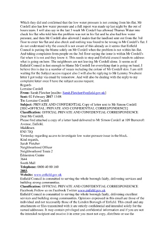 floor to enter his flat and also check and nothing was found to be wrong in Mr Cordell's flat. I