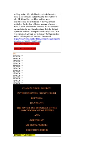 why Mr Cordell accused her making noise.