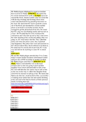 today to report further incidents with Simon Cordell