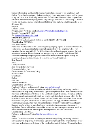 neighbours. Copies of both letters will be sent to Mr Cordell’s address.