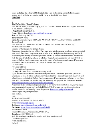 issues including the colour of Mr Cordell skin. I am still waiting for the Subject access