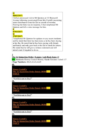 I telephoned Mr Quinton for updates on any recent incidents