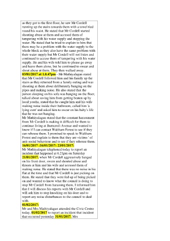 21/01/2017. when Mr Cordell aggressively banged