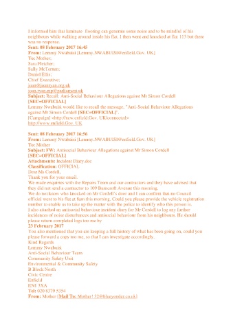 Subject: FW: Antisocial Behaviour Allegations against Mr Simon Cordell