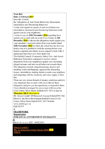 Re: Allegations of Anti-Social Behaviour, Harassment,