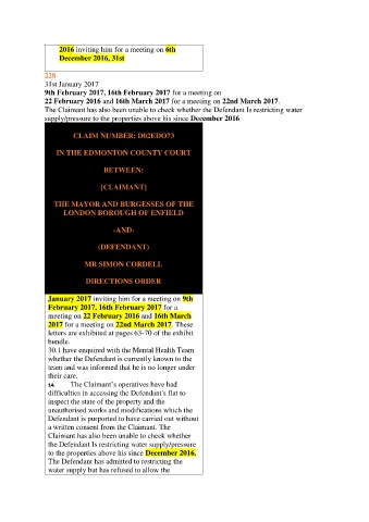 The Claimant has also been unable to check whether the Defendant Is restricting water