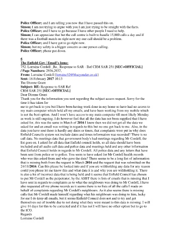 that Enfield Council holds in regards to Mr Cordell. All police data and any letters that have