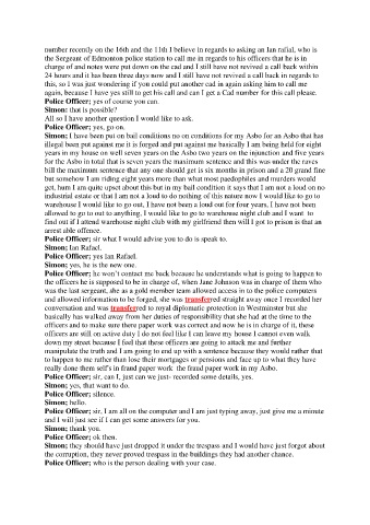 the Sergeant of Edmonton police station to call me in regards to his officers that he is in
