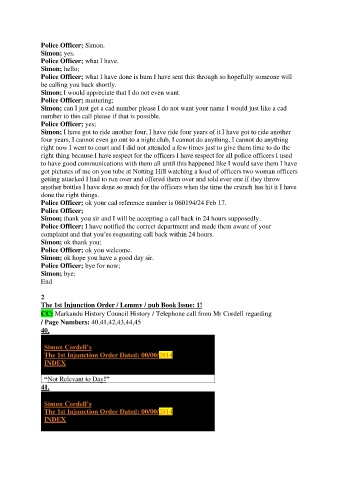 CC: Markandu History Council History / Telephone call from Mr Cordell regarding