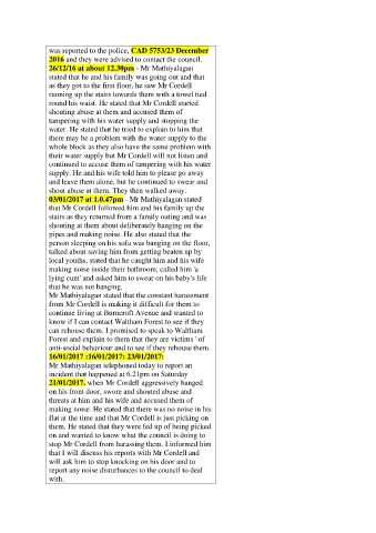 21/01/2017. when Mr Cordell aggressively banged