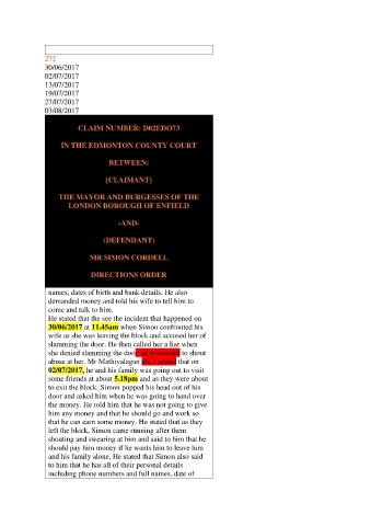 30/06/2017 at 11.45am when Simon confronted his