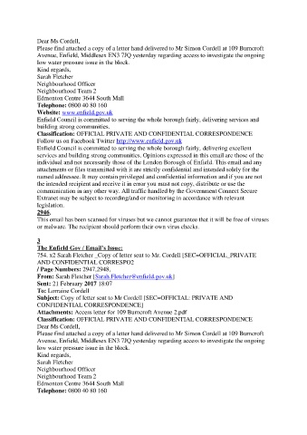 Please find attached a copy of a letter hand delivered to Mr Simon Cordell at 109 Burncroft
