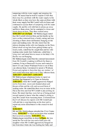 21/01/2017. when Mr Cordell aggressively banged
