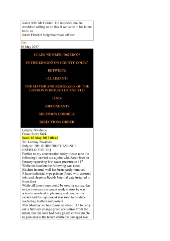 issues with Mr Cordell. He indicated that he