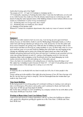 The tenants of 113 - 117 and 111 Continue to victimize me by-: --