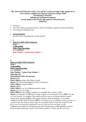• The Asbo Order got granted in Error with Full Conditions against me and Fraudulently!