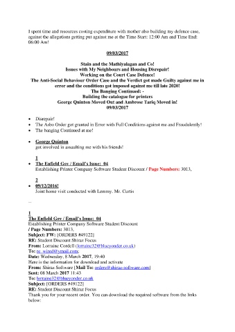 I spent time and resources costing expenditure with mother also building my defence case,