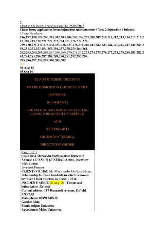 Claim form, application for an injunction and statements / New 2 Injunction / Indexed