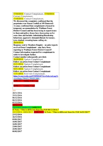 17/10/2016: Contact Complainant, 17/10/2016: