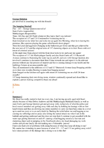The occupiers of 117 and 111 Continued to victimizing me by: --