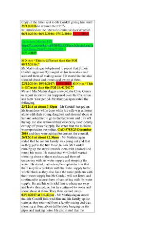 Copy of the letter sent to Mr Cordell giving him until