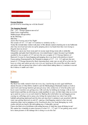 The tenants of 113 - 117 and 111 Continue to victimize me by-: --