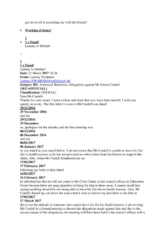 as you stated in your email below. I am not aware that Mr Cordell is unable to leave his flat