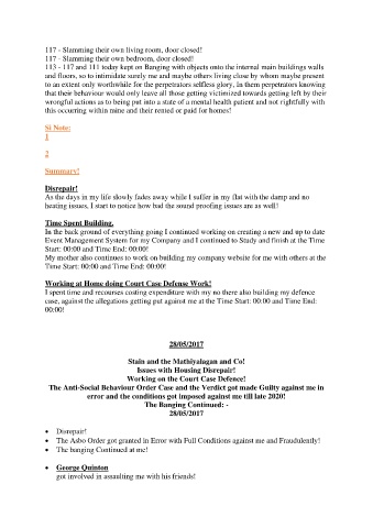 113 - 117 and 111 today kept on Banging with objects onto the internal main buildings walls