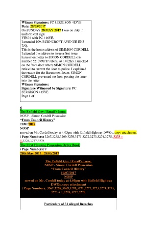 served on Mr. Cordell today at 4.05pm with Enfield Highway DWOs, copy attachment