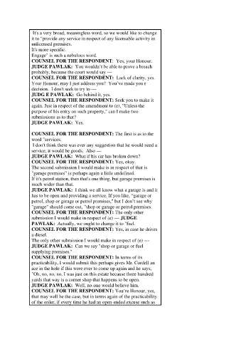 JUDGE PAWLAK: Can we say "shop or garage or fuel
