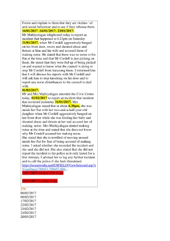 21/01/2017. when Mr Cordell aggressively banged