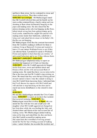 21/01/2017. when Mr Cordell aggressively banged