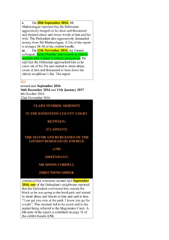 2016, one of the Defendant's neighbours reported
